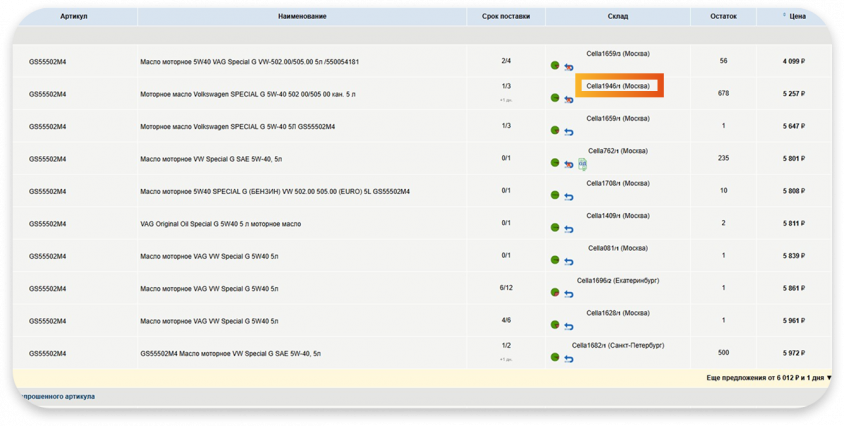При заказе товара, нужно обратить внимание на код поставщика, он указан в столбце “Направление”.